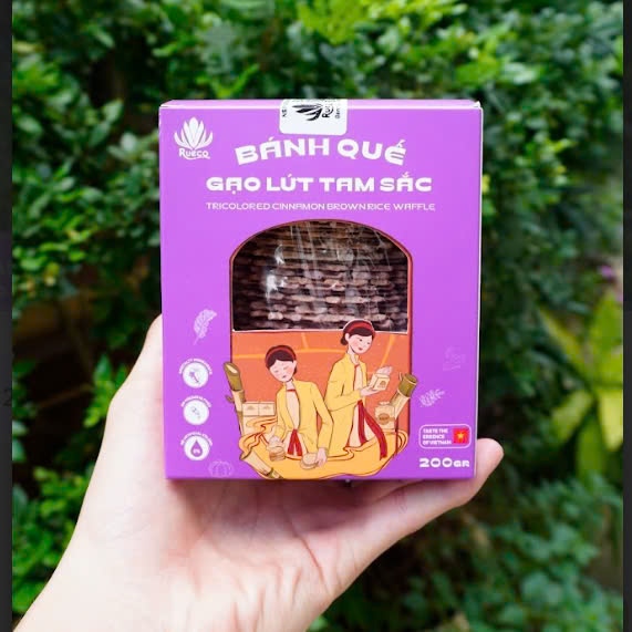 Mô tả sản phẩm: Bánh quế là một trong những đặc sản truyền thống của đất Hà Thành từ thế kỉ trước. Xuất phát bằng niềm đam mê sâu sắc với ẩm thực Hà Nội, Rueco tạo nên món bánh quế gạo lứt mang trọn hương vị thương nhớ một thời. Giữ nguyên phương thức sản xuất thủ công truyền thống và thêm một chút cải tiến từ nguyên liệu, bánh quế gạo lứt Rueco giòn tan, thơm mùi gạo lứt, quế, vừng,… quyện với vị ngọt dịu của đường đỏ. Món quà quê bình dị ghi lại dấu ấn của thời gian, như chiếc cầu kết nối các thế hệ người Việt.