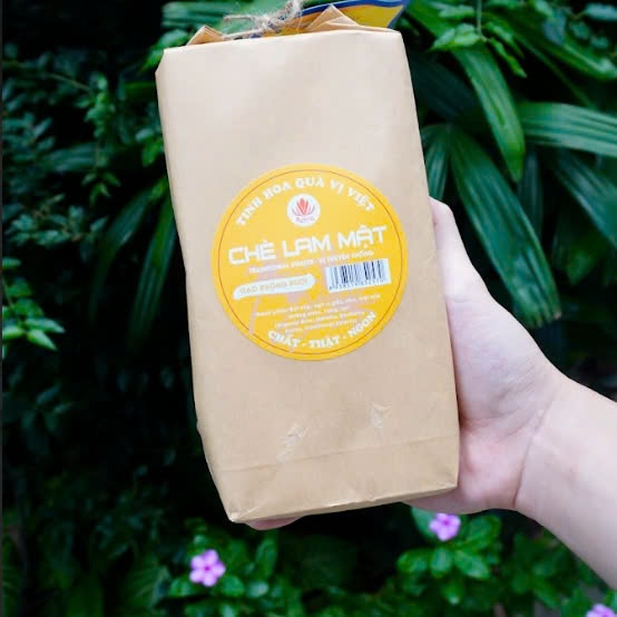 Mô tả sản phẩm: Chè lam Rueco là món quà quê đặc sản của Hà Nội với những nguyên liệu giản dị, mộc mạc được tuyển chọn từ những vùng trồng tốt nhất, chế biến bằng công thức cổ truyền, không dùng chất bảo quản. Bột gạo ruộng rươi làm từ gạo trồng trên cánh đồng nuôi rươi ở Tứ Kỳ, Hải Dương, gừng vườn nhà, mật mía… Tất cả hòa quyện vào nhau tạo nên chiếc bánh mềm mại, ngọt nhẹ, thơm mùi lúa chín, vị cay cay ấm áp. Chè Lam Rueco mang trọn tình thương của quê hương xóm làng Việt.